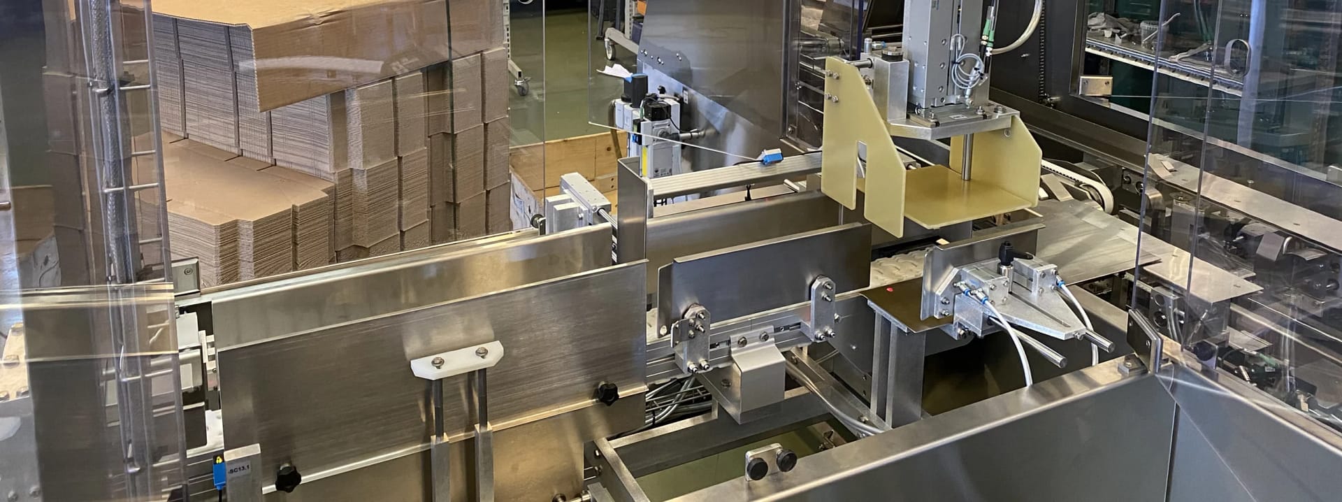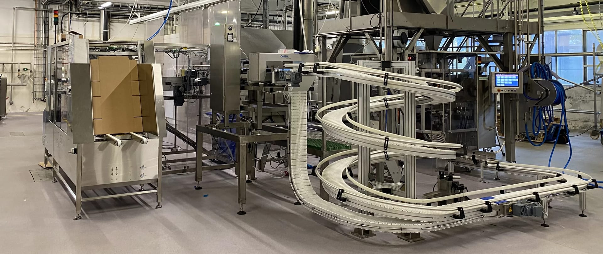 Vi leverer maskiner og utstyr for «end of line» pakking og håndtering av ditt produkt.