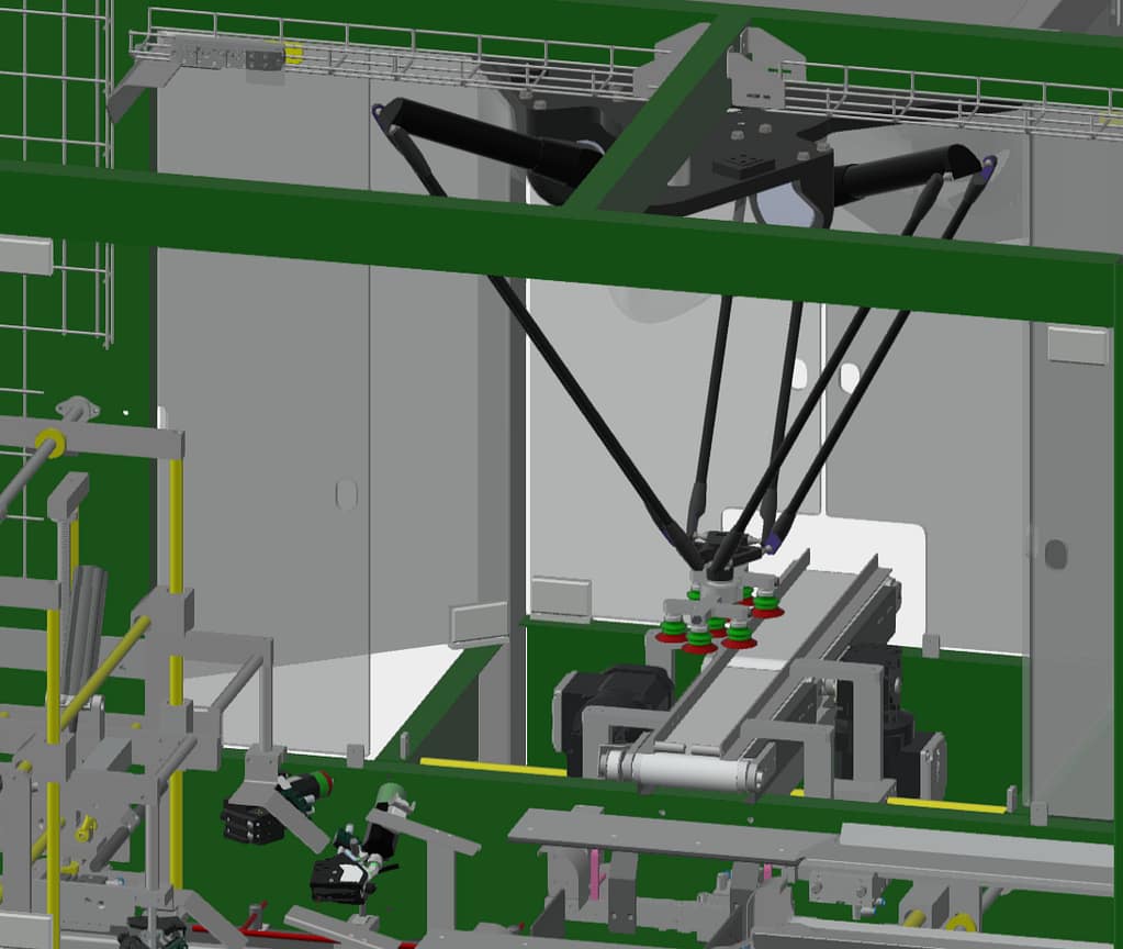 Vi kan tilby Delta picker-løsninger integrert i våre pakkemaskiner, eller som frittstående løsninger tilpasset kundens behov. Disse robotene er spesielt utviklet for høykapasitetslinjer og kan gjøre opp til 150 plukk/min med meget gode toleranser.
